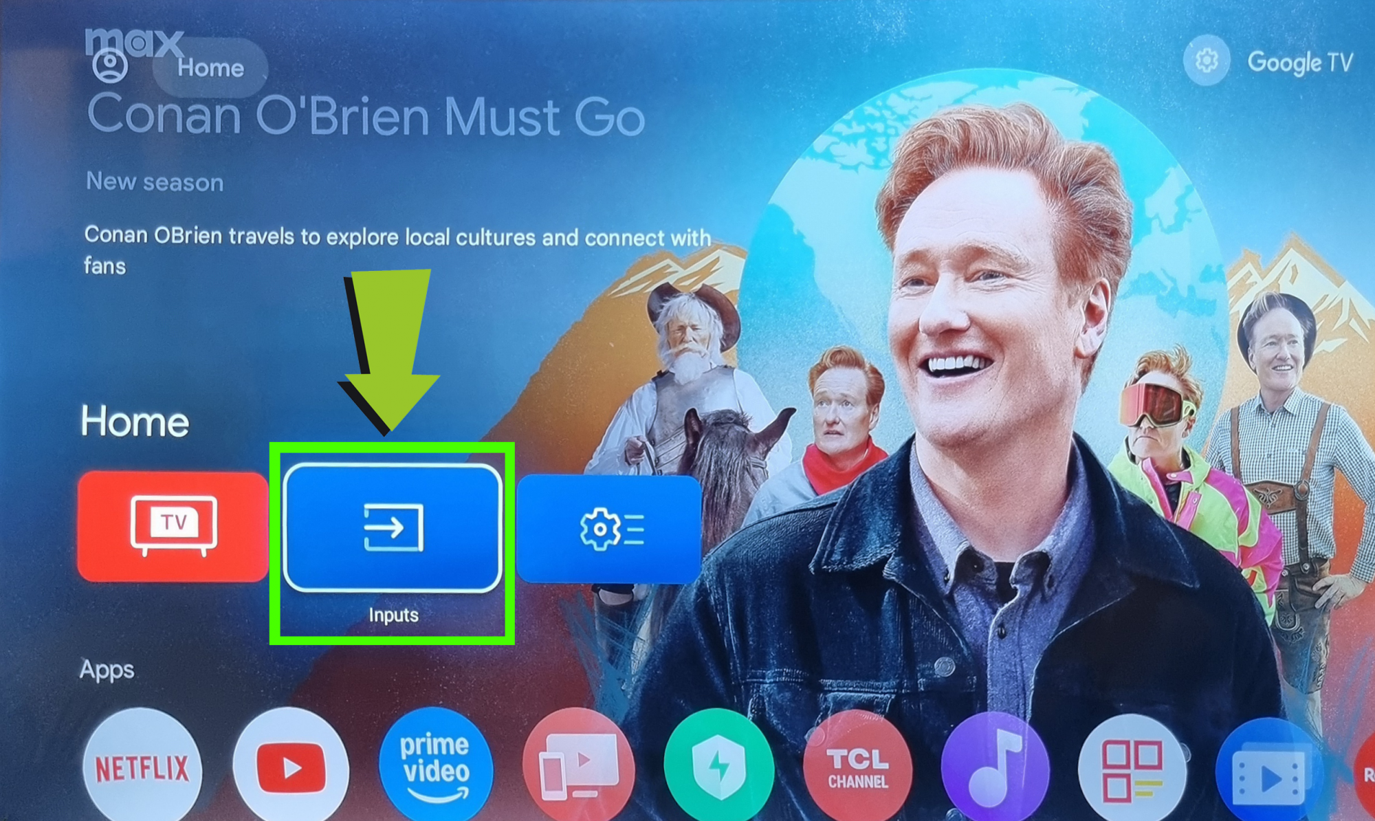 The first step, is click 7 on the remote control, then the screen below will show. Then click INPUTS
