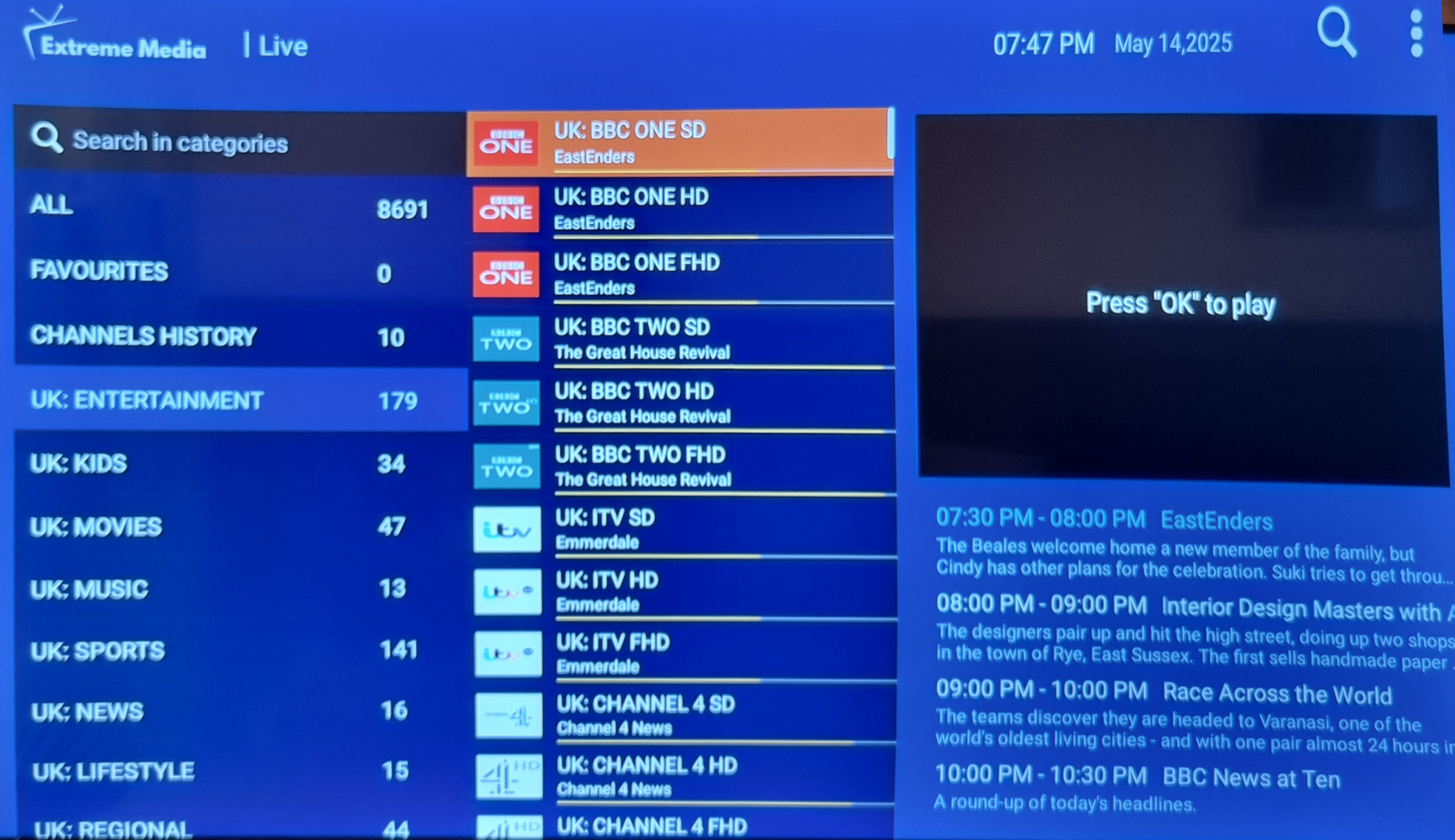Like most modern TVs, it can be a bit fiddly. This TV uses the EXTREME MEDIA system only, so please don’t press other buttons. The previous guest likely set it to their language, so you might need to adjust a few settings.